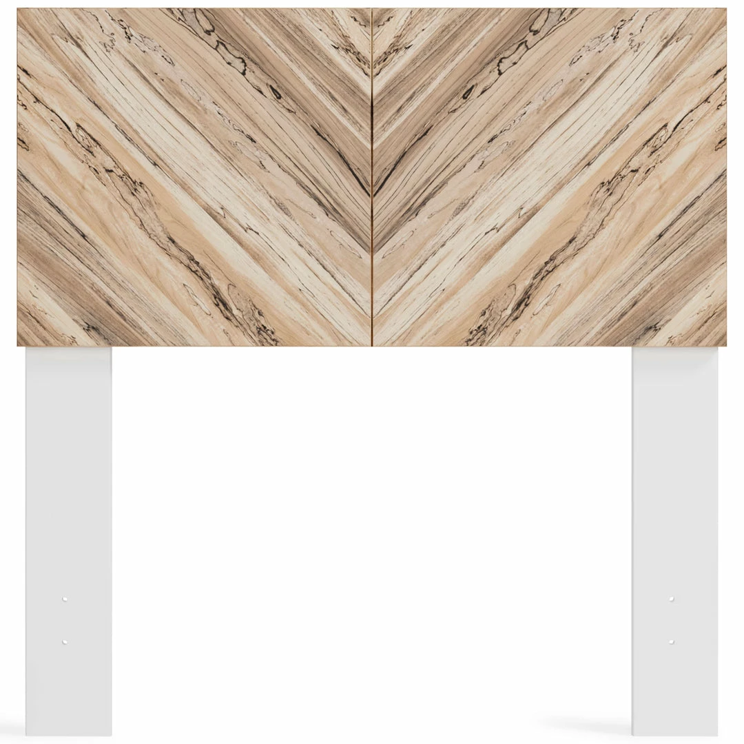 The perfect marriage of contemporary and casual style, this twin panel headboard is a charming addition to your home. This headboard is expressive with its warm and inviting replicated sugarberry wood grain pattern.