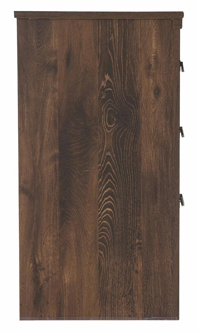 - Warm dark brown vintage finish over replicated oak grain and authentic touch