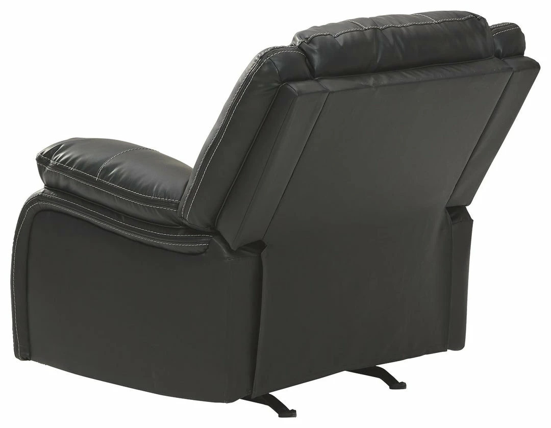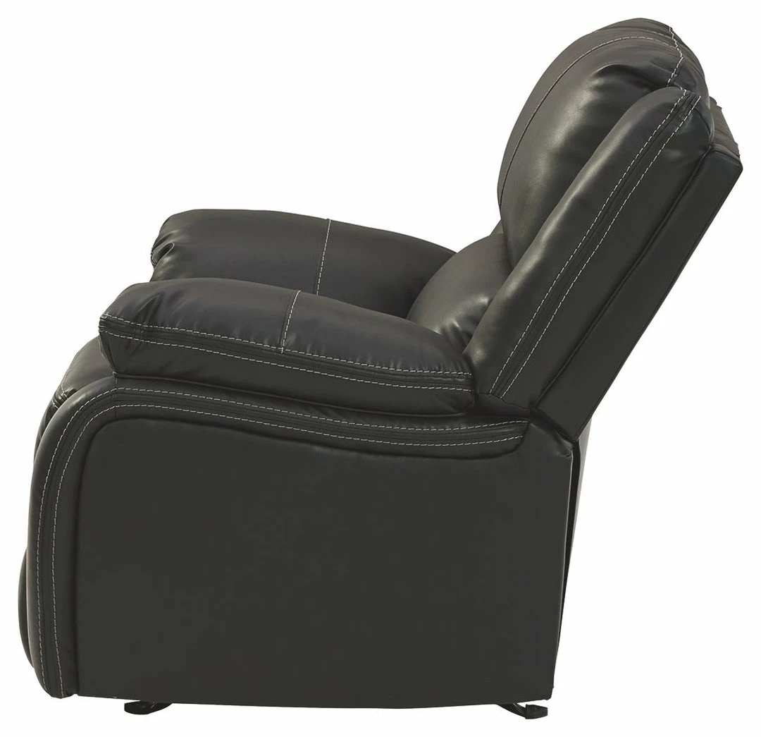 Sleek and streamlined, this rocker recliner draws out your leisure time with its bustle back construction and thickly cushioned armrests. The super soft faux leather gets a high-end tweak with jumbo contrast stitching so you don’t have to sacrifice style for comfort. Sink into the comfortably supportive cushions and stretch your evening as long as you can.