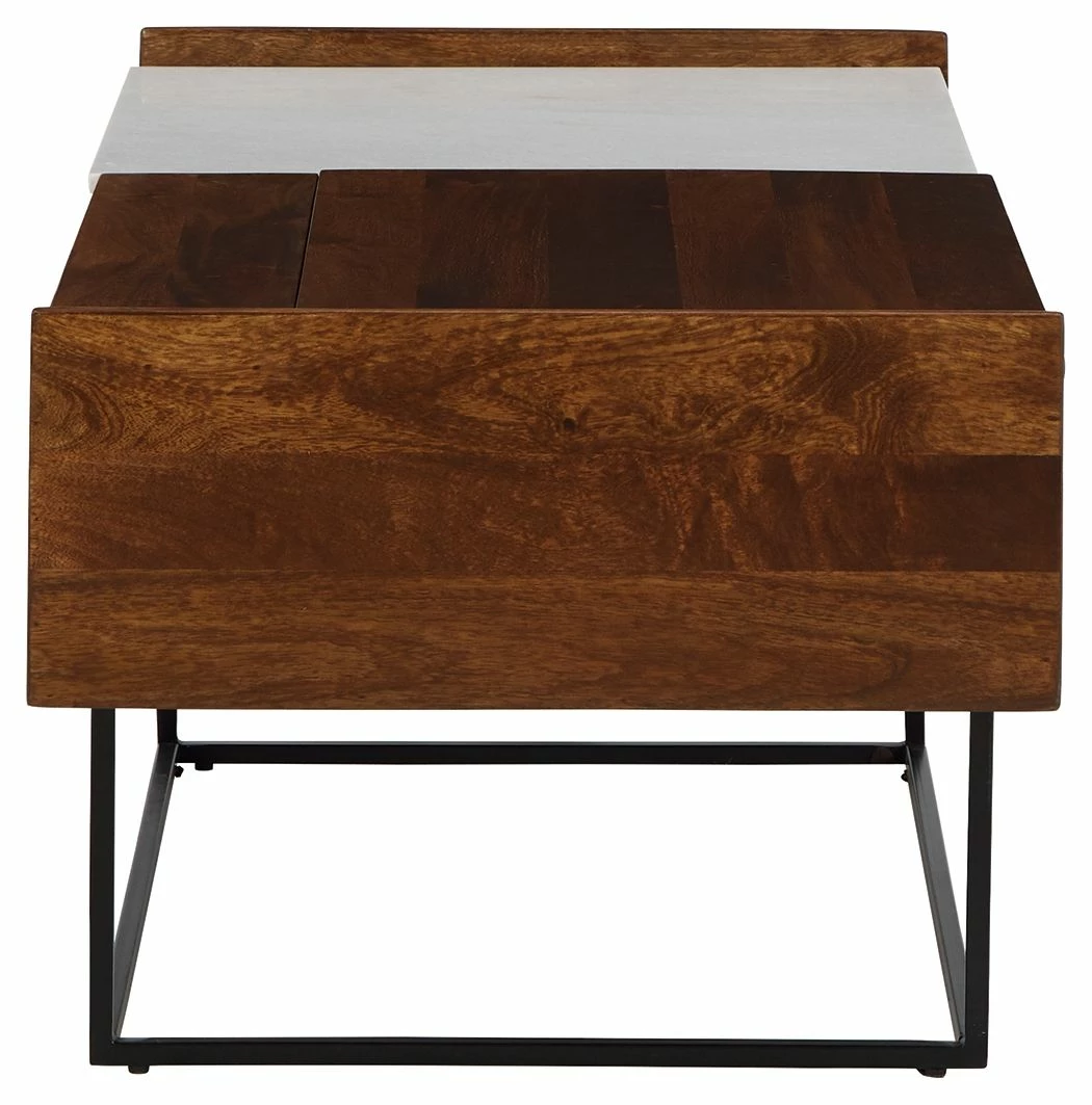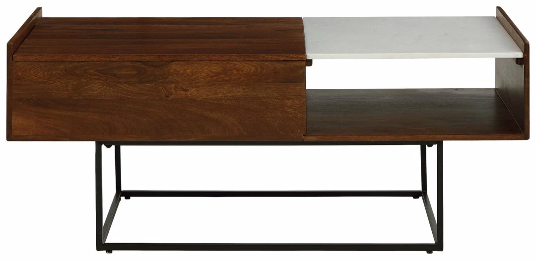 A posh and polished look for a contemporary aesthetic, this striking coffee table features solid mango wood, a natural marble tabletop and a slim metal base. Equipped with a convenient lift-top surface for working or dining from your sofa, as well as open space underneath, this beautiful coffee table easily complements modern seating arrangements.