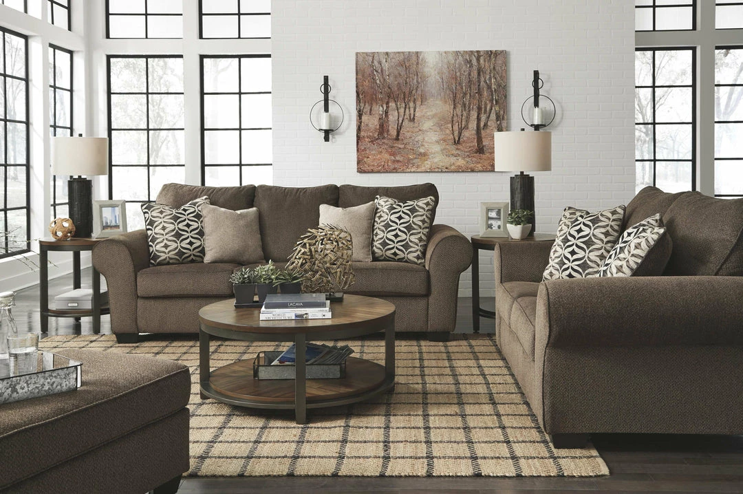 Once you settle into this sumptuous sofa youโll wonder how you ever lived without it. Elements including softly rolled arms and textured chenille upholstery create the perfect relaxation destination. Quartet of toss pillows in complementary colors complete the chic, trendy look.