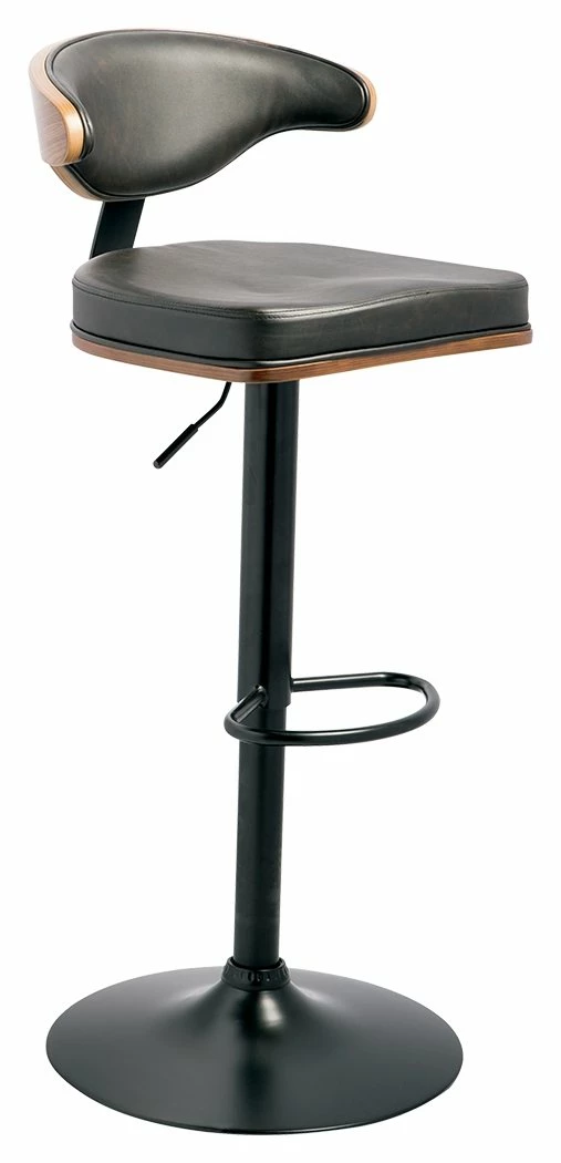 Style takes quite a modern turn. Sporting a distinctively contoured back, this upholstered swivel bar stool is sure to bring an elevated look to your living space. Wrapped in a black faux leather upholstery, the seating areaโs artful contours put the accent on comfort.
