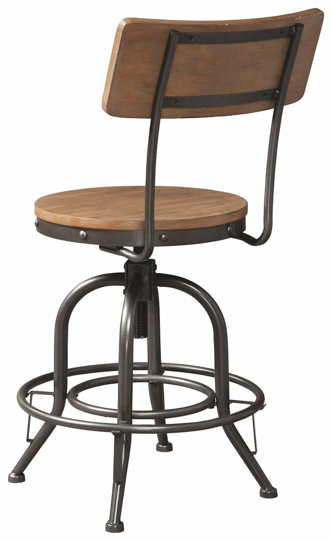 With its smooth, 360-degree turning radius and adjustable height swivel, this bar stool turns back time with some cool vintage-inspired flair. The frame’s signature finish with a wire-brushed effect and gray undertones exudes an easy, relaxed sensibility, while faux rivets incorporate a rustic punch.