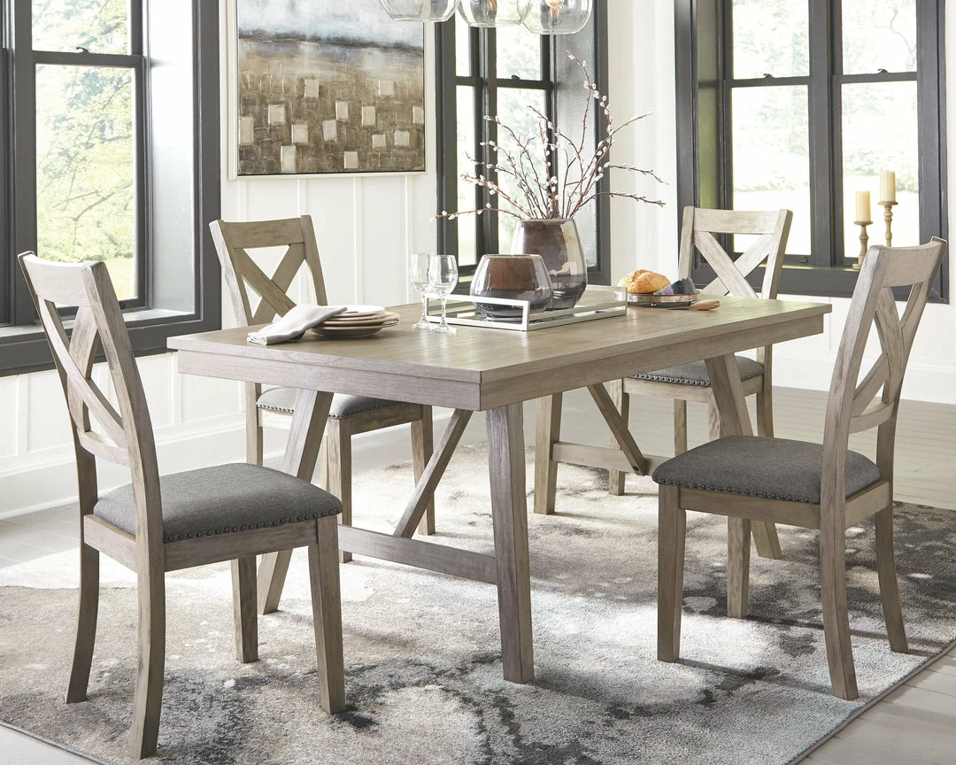 Modern farmhouse has never looked better. This dining room table allures with its wire-brushed finish and country-inspired crossbuck trestle design. Equal parts cozy and chic, this dining table will have you wanting to stay in with family a little while longer.