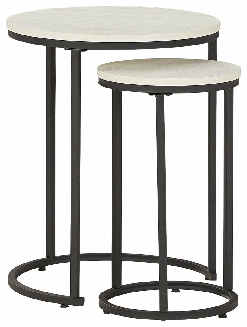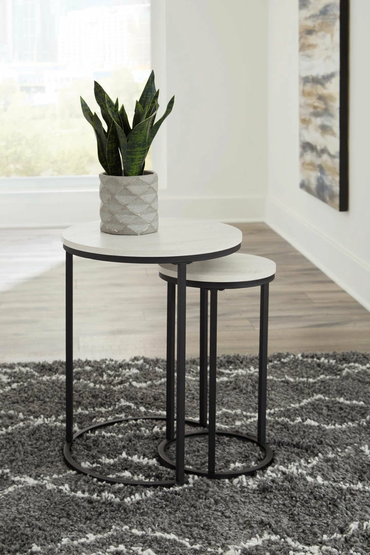Round out your home with these circular top accent tables. In a nesting set of 2, the white finished tables add casual flair. Black finished metal keeps things sleek. With space for lamps, photos and other accessories, the possibilities for this set of accent tables are endless.