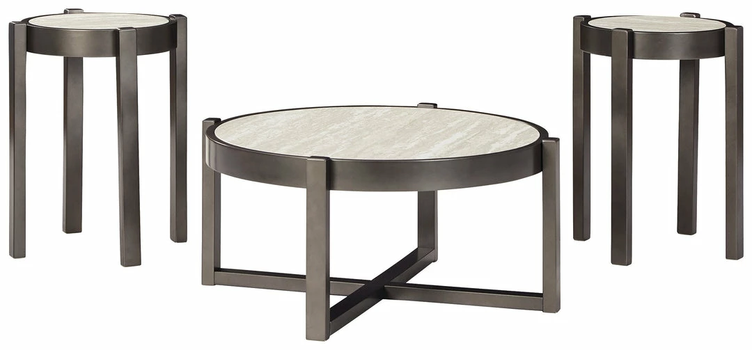 Lannoli – Beige/pewter – Occasional Table Set (3/cn)