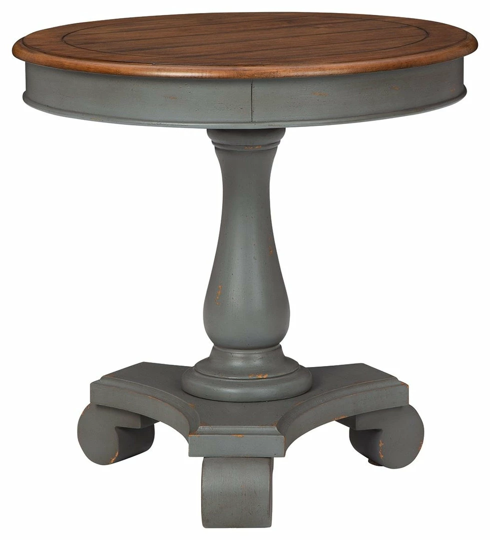 Achieve the vintage casual look you love with this accent table. A stylish addition with a simple design in antiqued gray and brown finishes, this accent table completes any room.