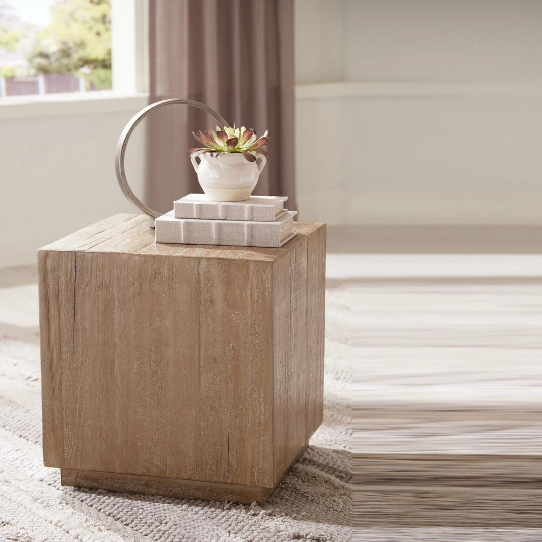 The clean-cut profile of this accent table works equally well in casual and contemporary settings. A distressed brown finish highlights the rich wood grain for a warmly weathered appeal. Dress up the wood table with decor to suit your style needs.
