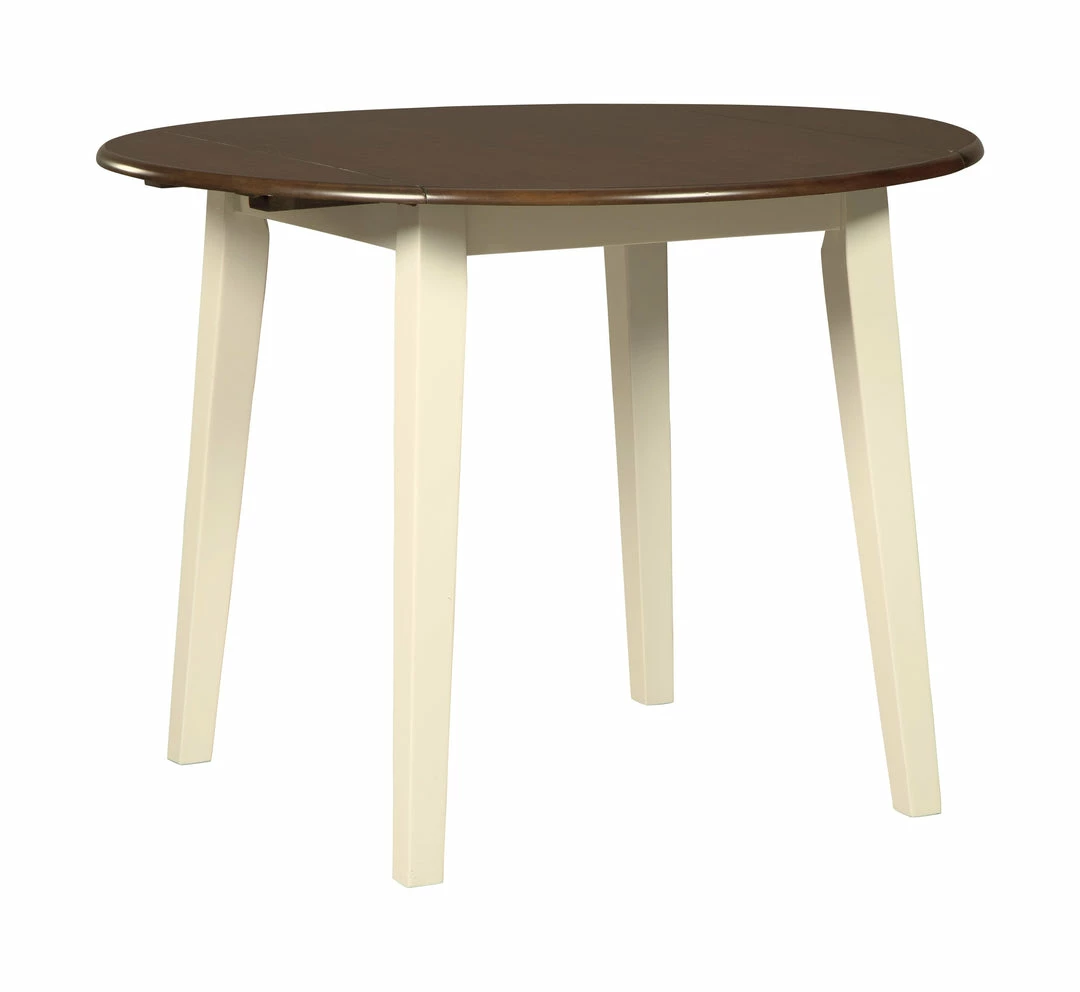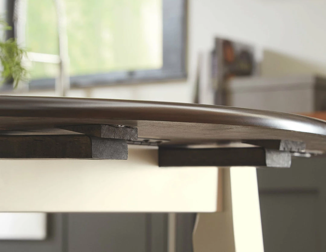 Turn your eat-in kitchen or dining space into a cottage-chic retreat with this round drop leaf table. Two-tone finish serves up a double helping of charm. When accompanied by the matching ladderback chairs, what a storybook scene.
