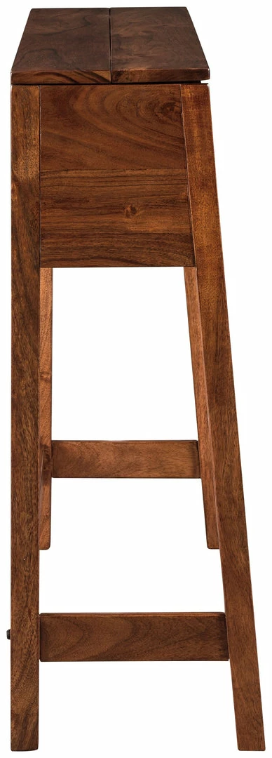 A sleek, scaled-down version of the classic secretary desk, this console sofa table makes less so much more. Fold-up top and fold-down desk beautifully accommodate your needs. Signature elements include an interior pencil box thatโs mighty handy. Be it in the entryway, living room, bedroom or kitchen, this space-conscious piece is just the write touch.