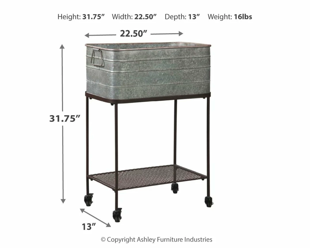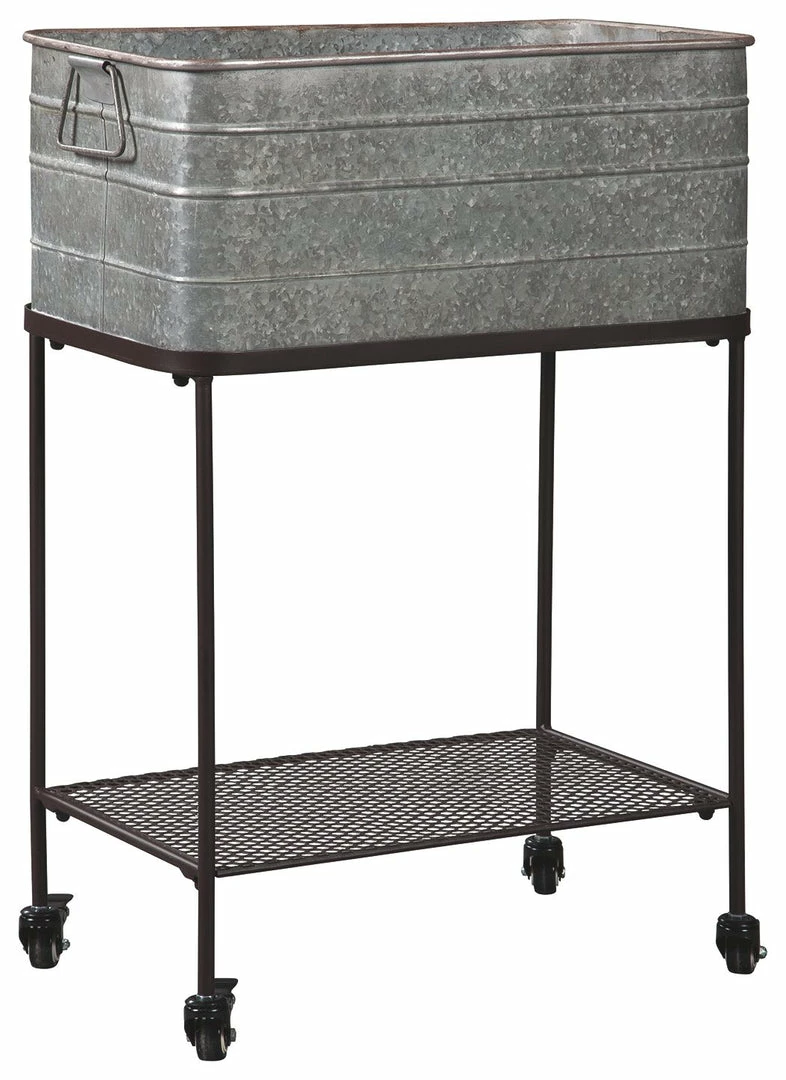 Help yourself to a retro-chic sense of style with this beverage tub with stand. Smooth-gliding casters and metal grill shelf for glasses and bottles let the good times roll. Galvanized metal finish makes it feel so authentic.