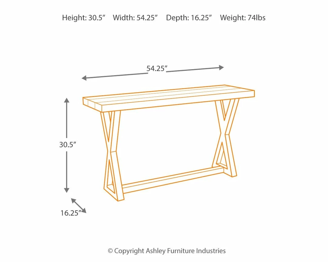 Topped with a rich, thick slab of sustainable mango wood, bathed in a light rustic finish, this sofa table wows with clean-lined style and a hearty presence. Classic X-brace base with stretcher is crafted of a contrasting metal for a merge of mixed media elements and a touch of modern industrial.