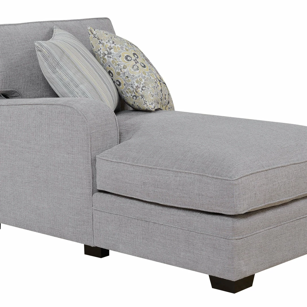 Uniquely designed to configure best to your needs, the Analiese collection combines the utility of a modular configuration with transitional styling. Pops of subtle color and pattern in the accent pillows add dimension to the classic chenille-textured upholstery. Create your perfect layout from an armless chair, armless loveseat, corner chair that also functions as an end piece, spacious chaise for lounging, and an inviting cuddler for curling up! The Analiese sectional will look beautiful tucked into a cozy corner or defining an open concept space with a style that will last for years to come.