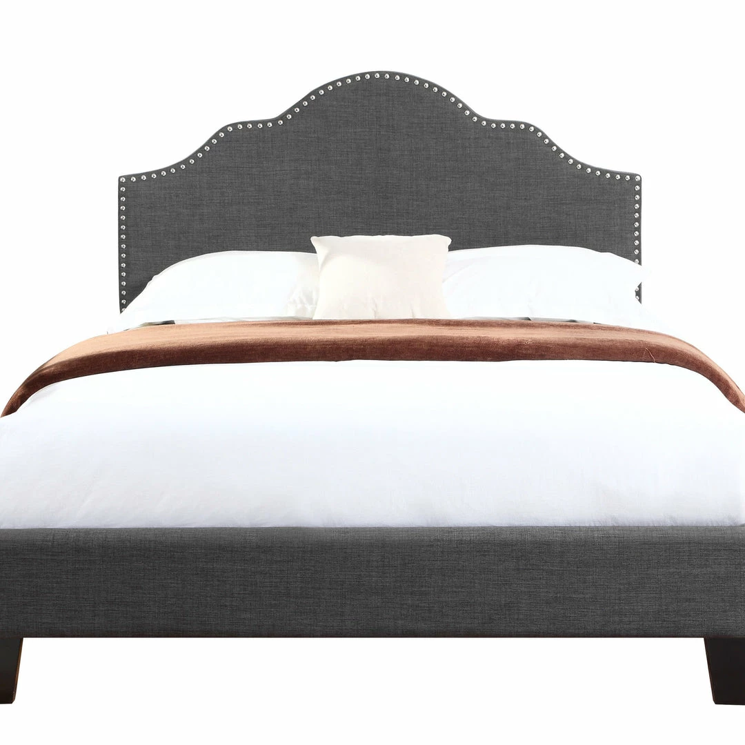 Soft and elegant describe the new Madison platform bed. The classic curved shape, linen-like upholstery, and nailhead trim detail make this bed an excellent choice for modern day while still retaining some elements of the traditional. The Madison platform bed will elevate your bedroom from plain and simple to stylish and sophisticated as you transform your bedroom into the master retreat you’ve always wanted.