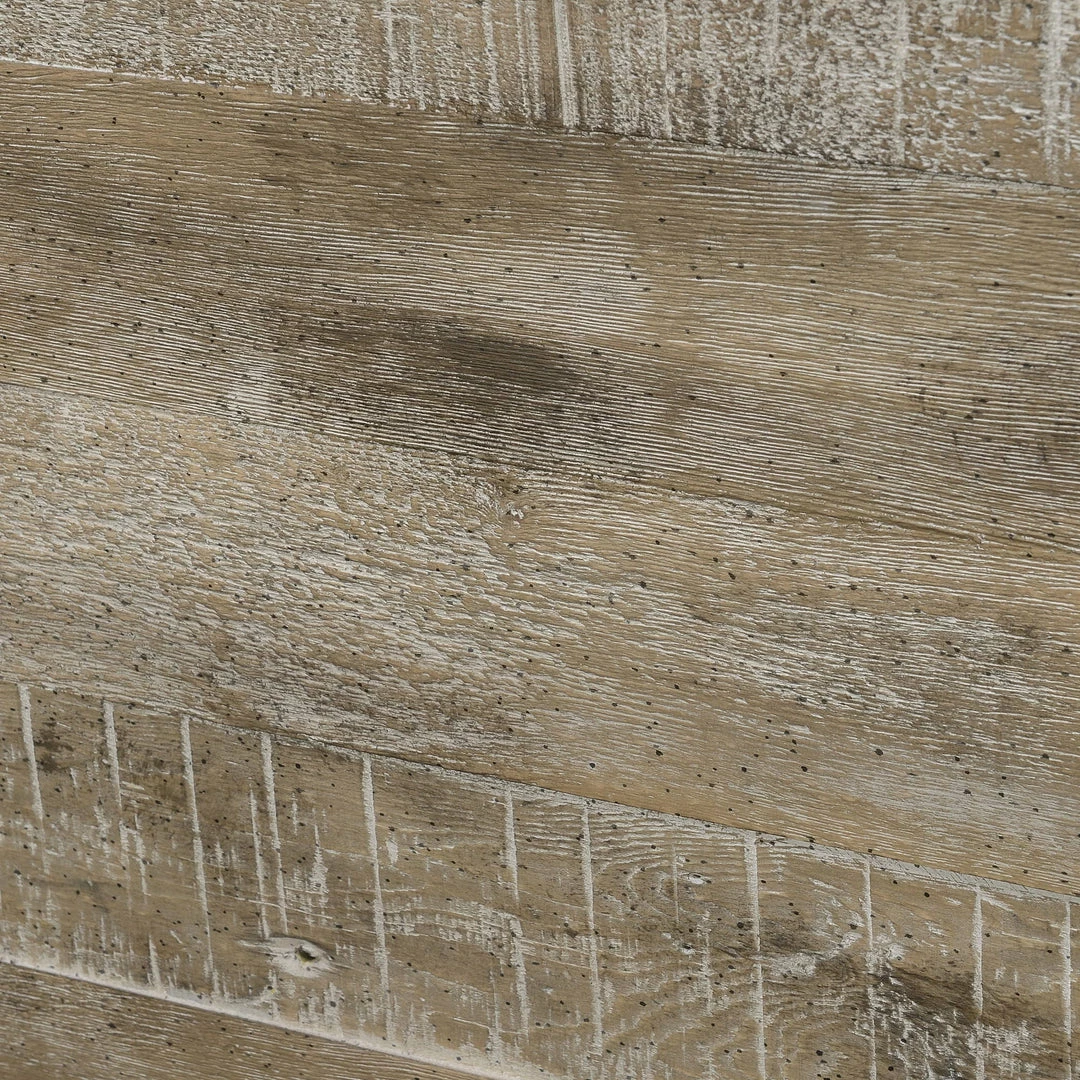 Interlude combines a rustic nature with classic portrait-back side chairs to create a French country look for today. Pine solids and veneers and American White Ash solids are brought together to craft the planked tabletops, turned legs, and fluted details. Cup pulls and exposed hand-latch rods add just the right touch of authenticity, while a soft whitewash settles in the heavily hand-distressed sandstone buff finish, adding texture to the contemporary French country collection.