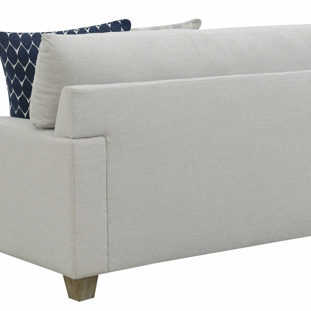 When you want to freshen up your living room, the beautiful Laney collection is at the ready. The classic silhouette is given a subtle update in this transitional design. It features large, comfy cushions in subtle harbor gray color with patterned accent pillows for a pop of color. Whether you’re settling in with a good book or entertaining for the evening, you’ll love the Laney collection for years to come.