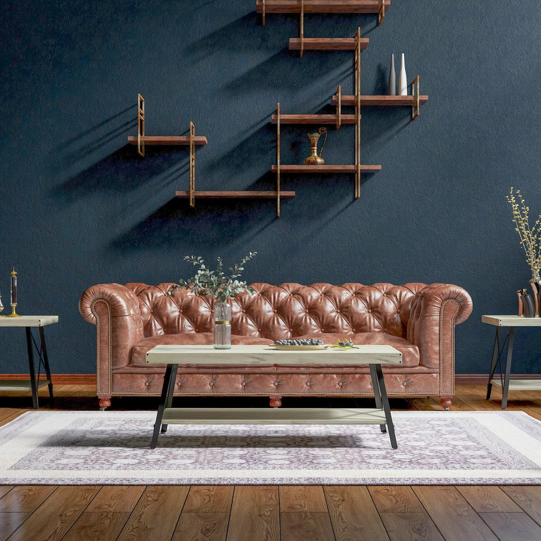 The wood and steel of the Chandler collection pair brilliantly with any style family or living room, instantly creating the look and feel of history in your space. The planked top highlights the wood’s natural knots and grain and will only look better with age. Solid steel angled legs and cross-bracing with metal rivet detailing add a dash of architectural interest to the modern rustic Chandler.