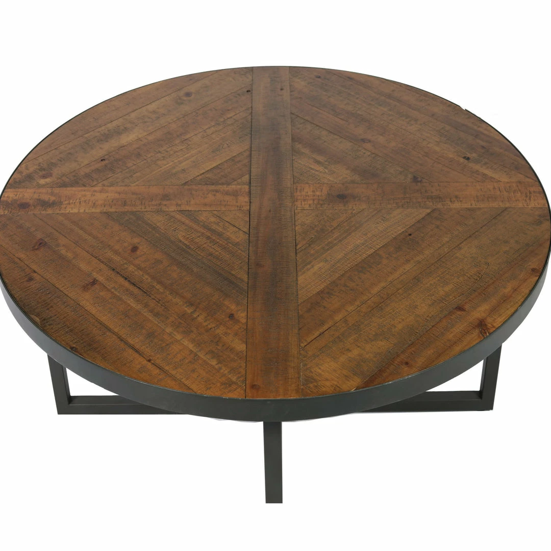 The Denton occasional collection is a study in simplicity. A straightforward cross of welded metal tubing finished in a steel gray tone and paired with a rustic pine-look planked top. The round cocktail table pairs well with today’s sectional sofas and the petite round end table is the perfect accent piece.