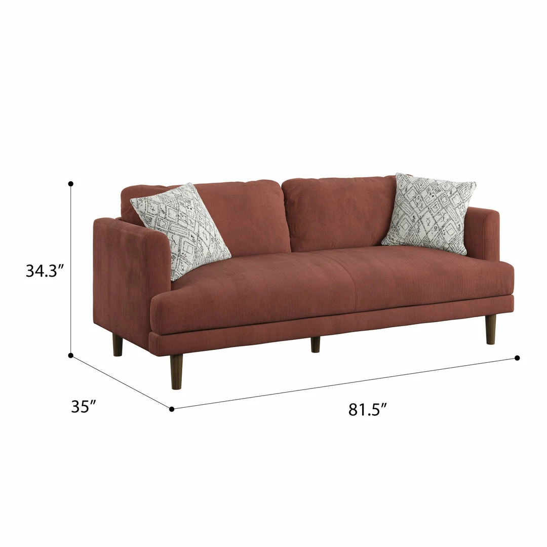 - The Juno sofa is a mid-century modern inspired dream with a classic low-to-the-ground design for an easy, intimate feel that only increases when wrapped in lusciously soft, earth-toned corduroy fabrics. A bold, black and white graphic print ushers this collection to the center of attention and delivers that finishing touch of personality to your space.
