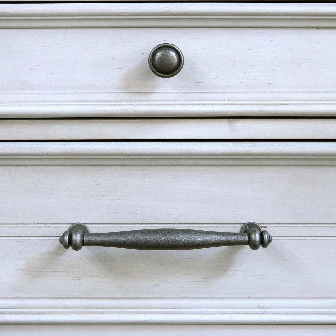 Grand in scale but casual in feel, the New Haven bedroom collection is an easy winner decorated with classic arches, scored fronts, and turned wood details. The oyster shell finish with light distressing lends a weathered appearance that pairs with charming antique pewter pulls and knobs for a seaside look. Make your home feel like summer year-round with the charmingly coastal New Haven collection.