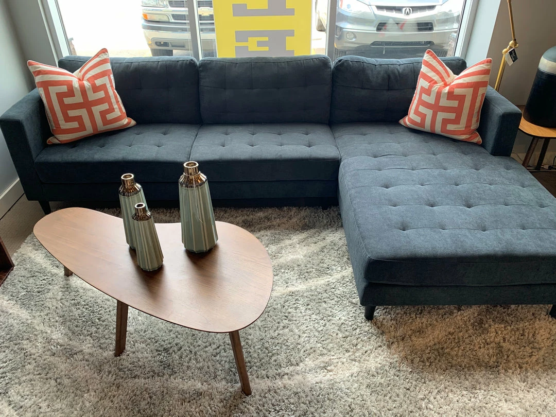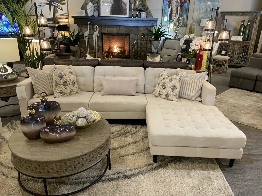 You don’t want to miss out on this contemporary, stylish, and modern sectional. The chaise can go on either side, and it comes in both this popular grey as well as a natural cream colour.