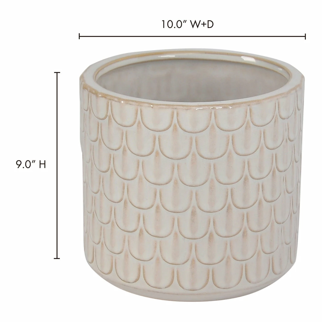 Here to amplify your bloom’s beauty, the Herb ceramic planter is a groovy creation that features hand-etched scale patterning in a neutral, nearly white shade.