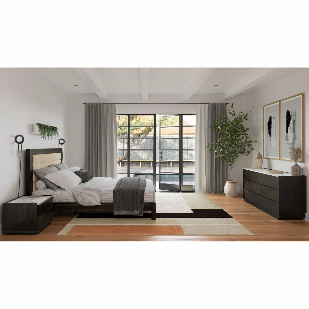A white marble tabletop, two soft close compartments and glossy acacia wood make the Ashcroft the ideal nightstand.