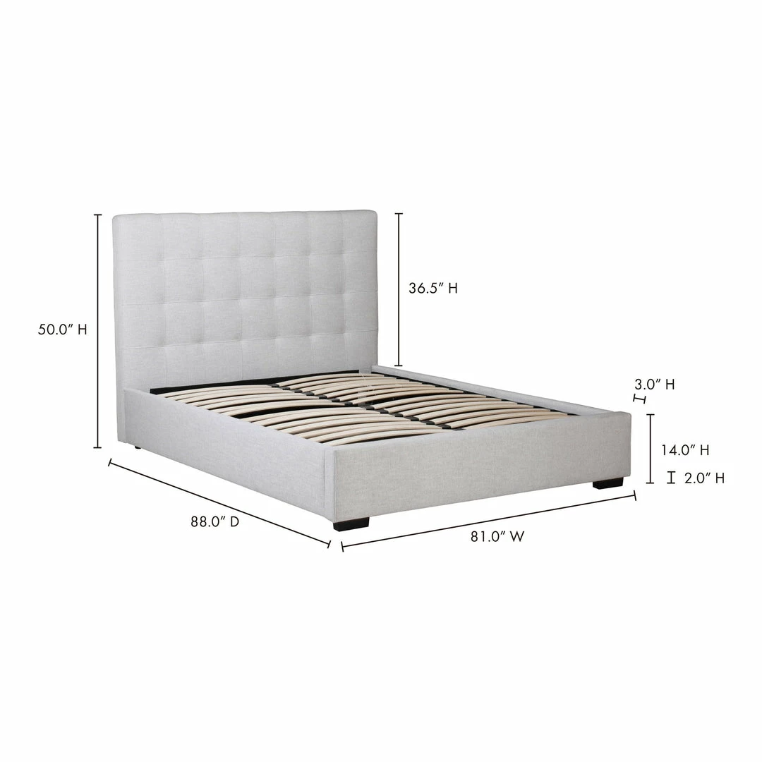 Get the most out of your space with the softness of the Belle king size bed, complete with hydraulic storage and tufted beige headboard design.