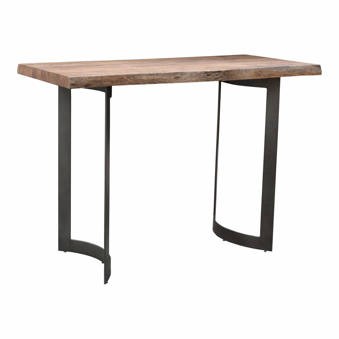 The Bent bar table is made of beautiful solid acacia, with the unique knots and whorls of the wood put front and center. Offset by sturdy industrial legs, this table is a gorgeous live-edge highlight for your dining space.