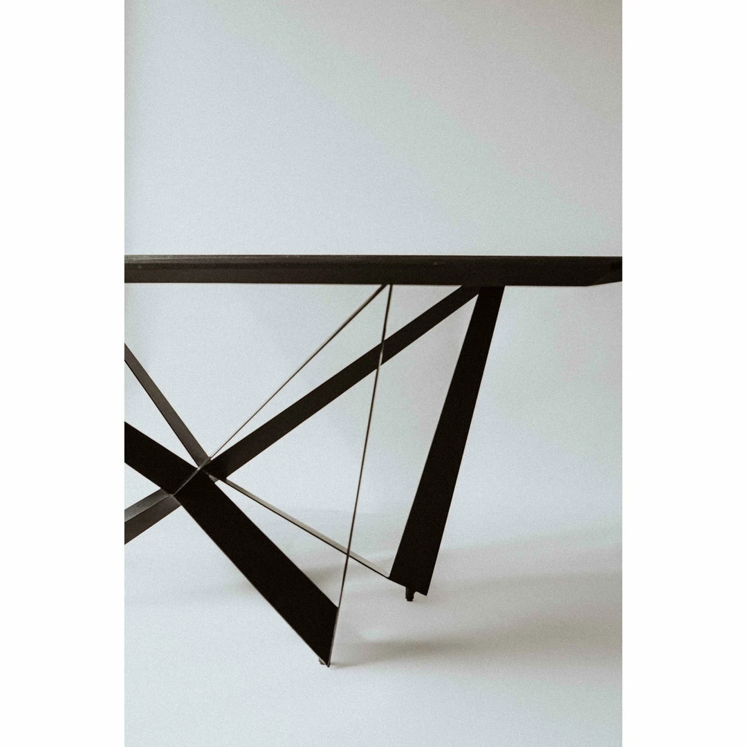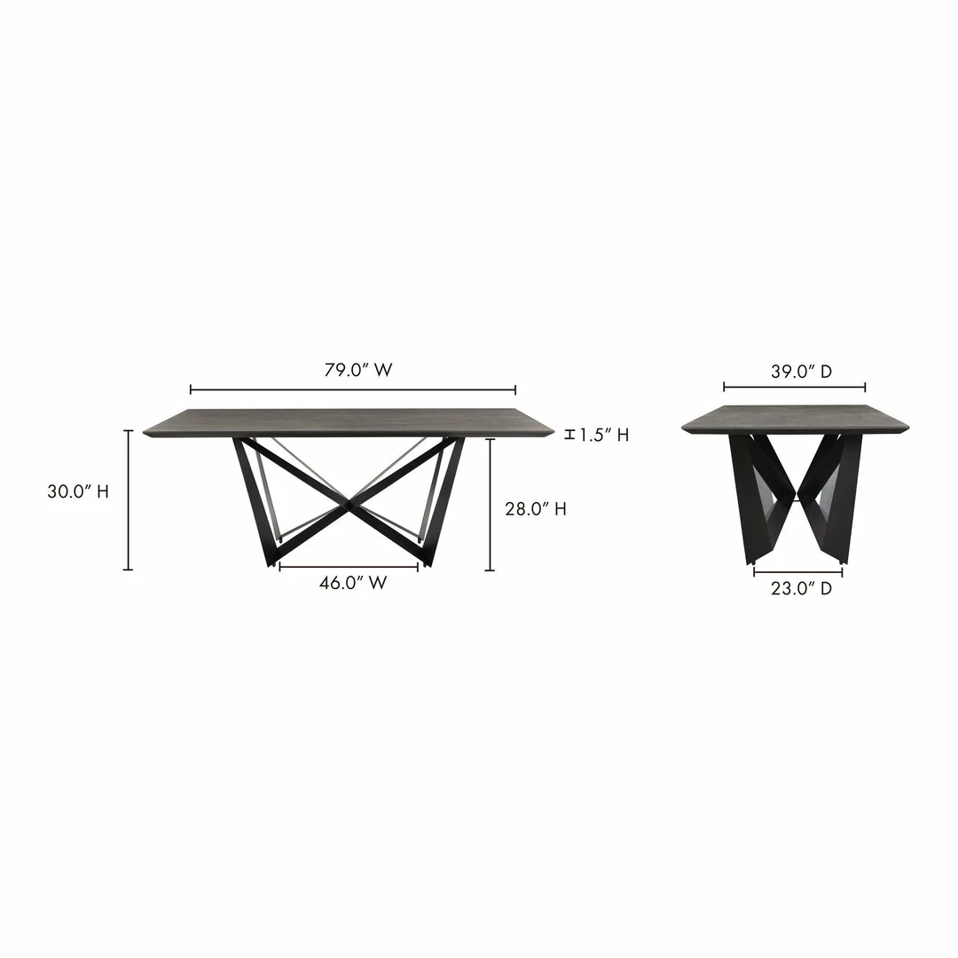 A dark, dramatic dining table, the Brolio’s solid mango tabletop rests artfully on 4 triangular iron legs. Pair this dining table with other pieces from the Brolio collection for a complete look.