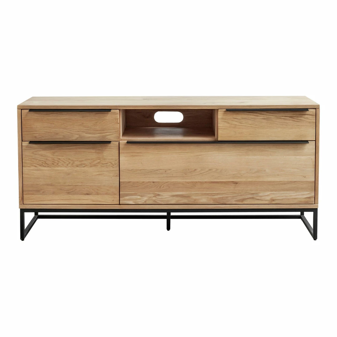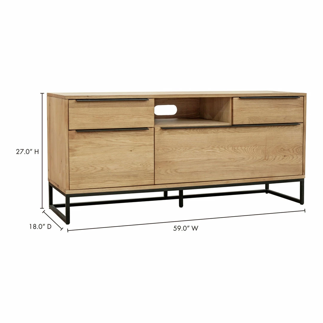 Featuring drawers, cabinets, and a handsome oak build, the Nevada media console ensures it will serve as an eye-catching and functional piece.