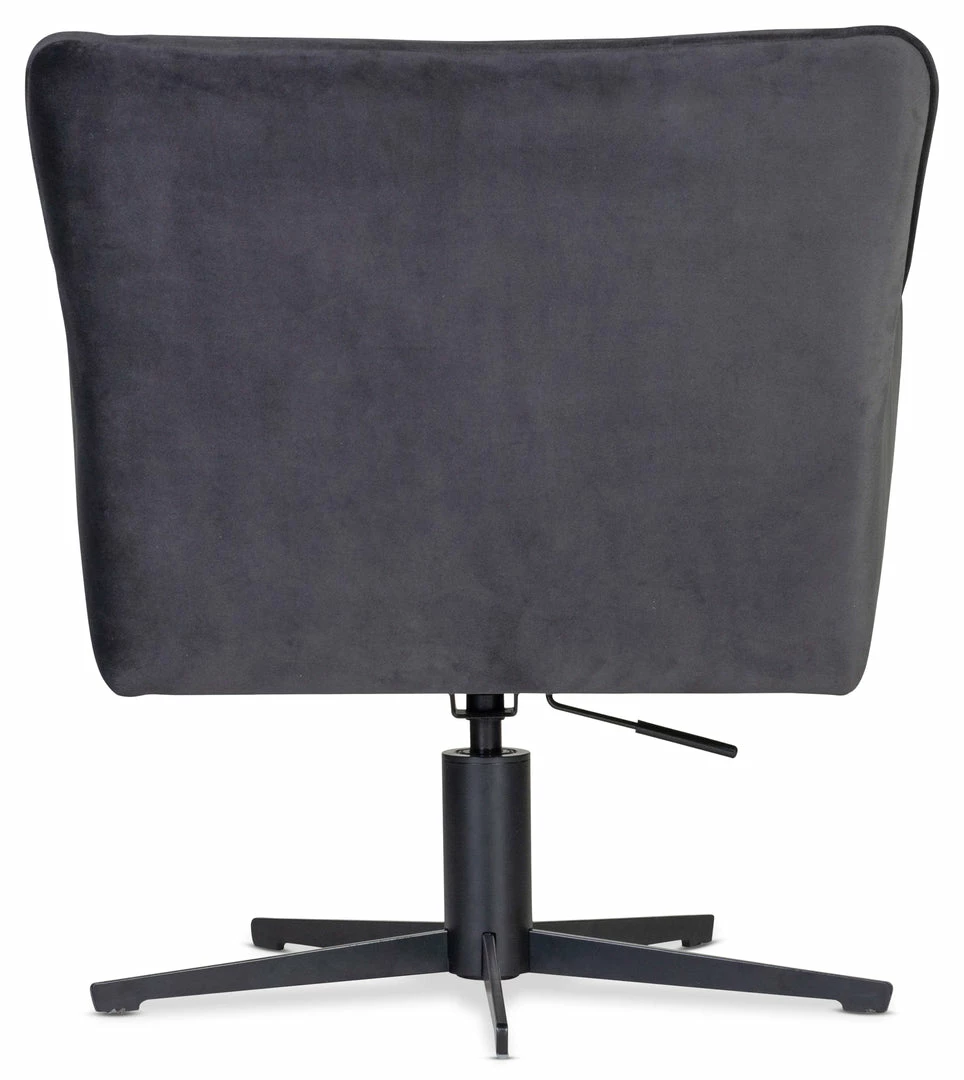 At Sundays, and in life, it’s important to see things from a different perspective. Changing your view is as easy as twisting your hips in this stylish swivel chair. Its rich smoky color palette will add a layer of sophistication to your room. Made with 100% velvet upholstery for a rich luxurious finish. The challenge is getting up from its foam-padded, deep spacious seat. Its hydraulic lift and swivel base make it too easy to enjoy the 360 degree views of your home or office.