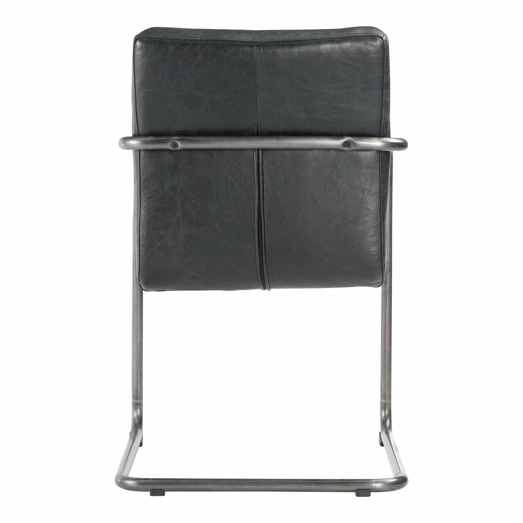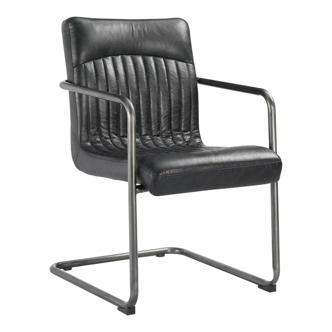 With an industrial frame and distressed top-grain black leather upholstery, the Ansel armchair adds industrial originality to your dining area.