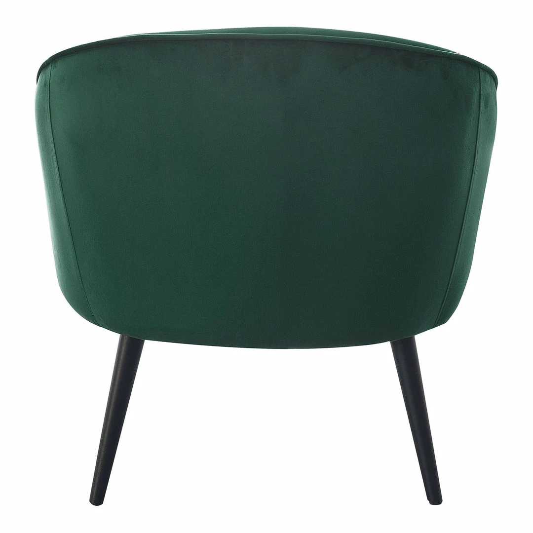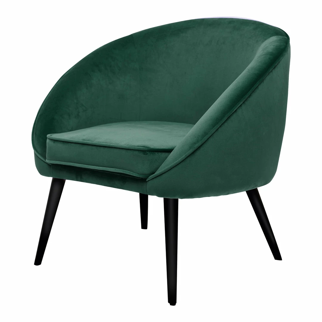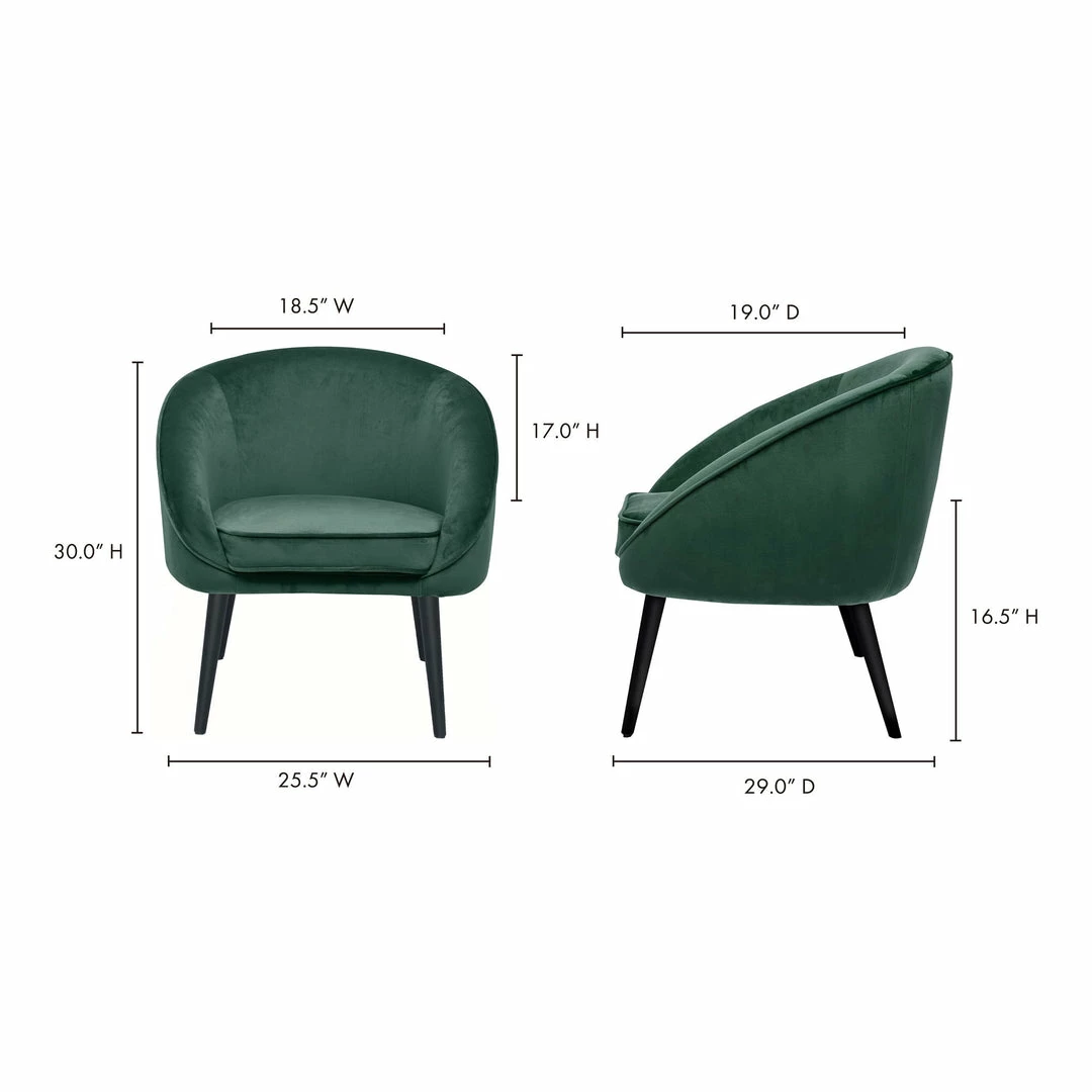 A stylish, versatile addition to living rooms and bedrooms, this green accent chair makes everyday lounging a more lavish occasion with its elegant, curvesome form and soft, velvety fabric.