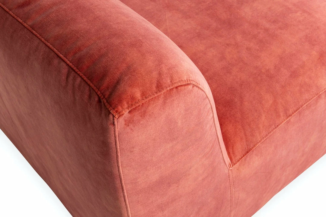Turn tradition on its head with a modular family of comfortable chairs and ottomans. These ones may be traditional in their velvety soft material, but are totally modern and sleek in shape.
