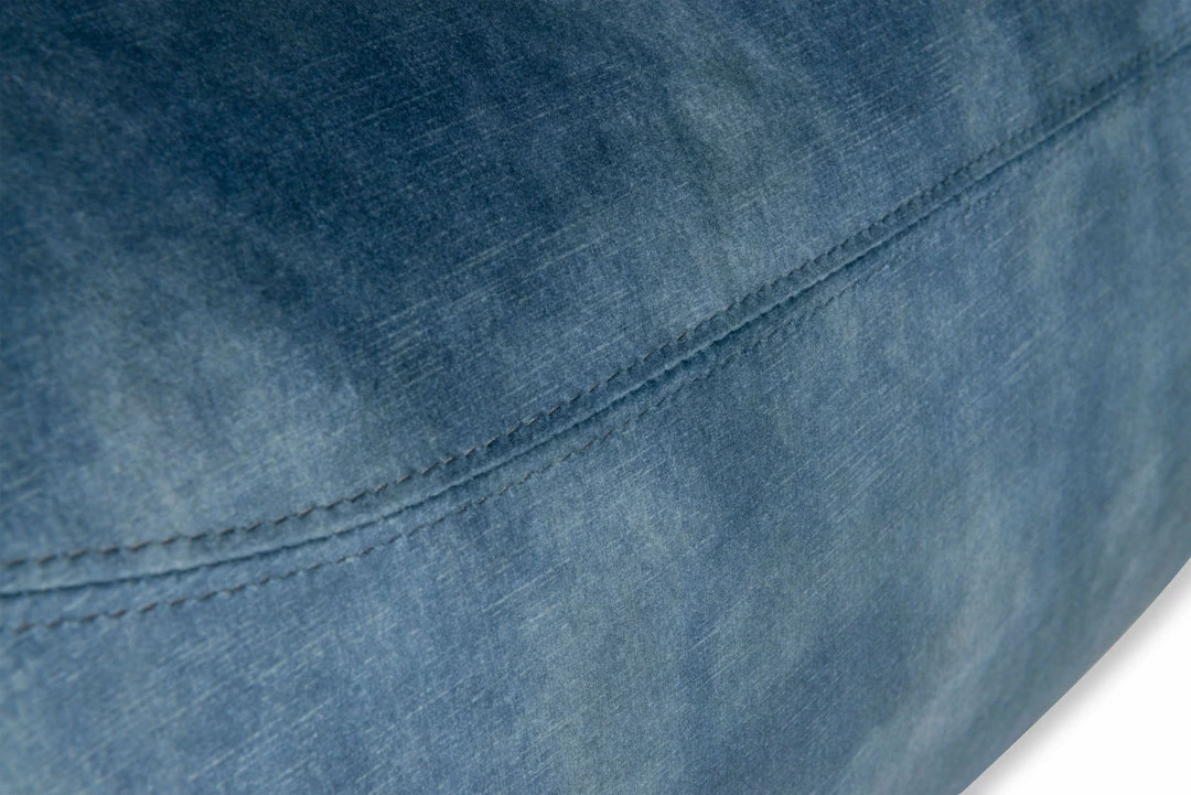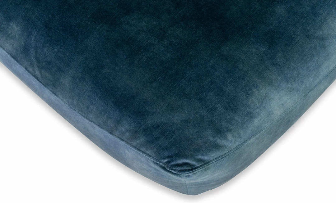 Turn tradition on its head with a modular family of comfortable chairs and ottomans. These ones may be traditional in their velvety soft material, but are totally modern and sleek in shape. Made with 100% fabric upholstery for a soft velvety finish. A beech wood frame makes this a solid construction that isn’t going anywhere. Goose feather and foam stuffing make this the comfiest little guest seat. Its spacious surface area can be transformed from a footstool to a coffee table to chic storage space to extra seating. Its cool blue palette adds a big pop of color to a room.