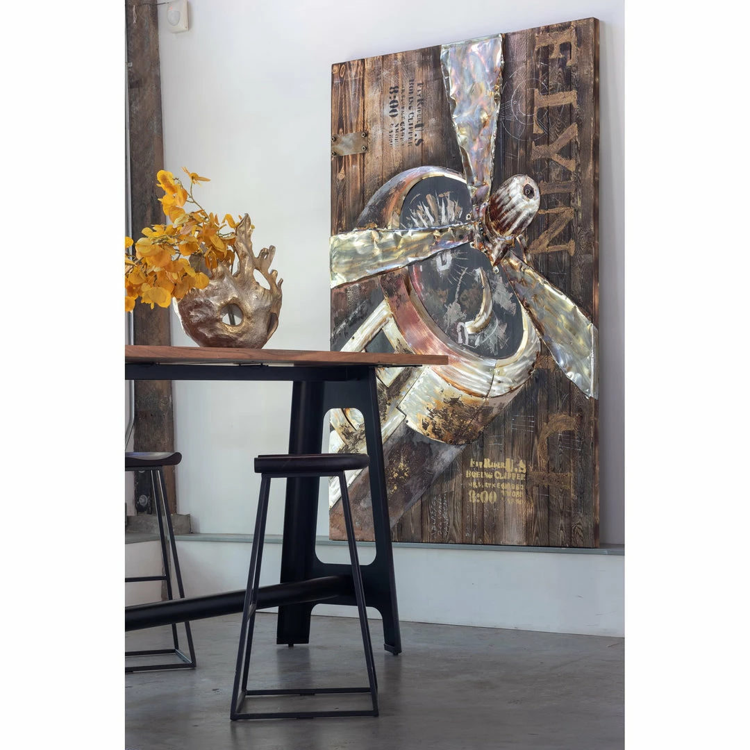 An abstract piece evoking the early age of flight, this large painting is even embellished with metal to fully set the mood.