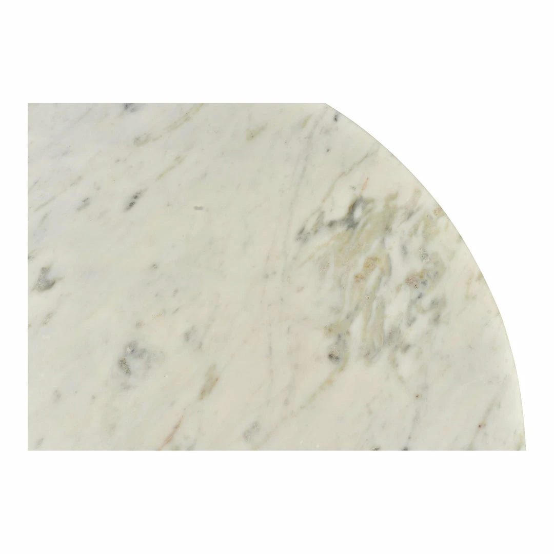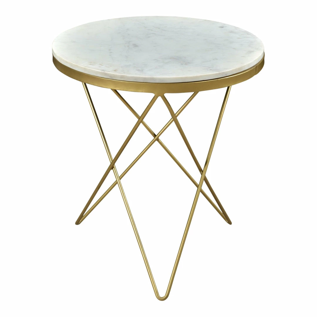 A glam white tabletop meets an intricate gold-coated base for this modern and attractive side table.