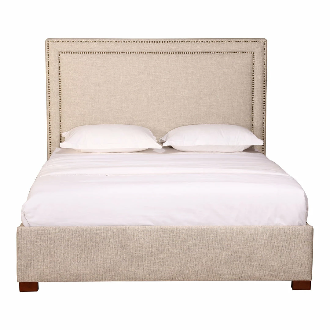With a soaring headboard upholstered in beige velvet and plenty of discreet storage space, this king sized Kenzo bed is the perfect mix of luxury and practicality.