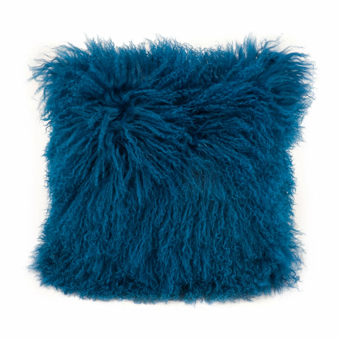 Perfect for adding texture to your living area, this pillow is upholstered in blue lamb’s fur for ultra-softness and chic design.