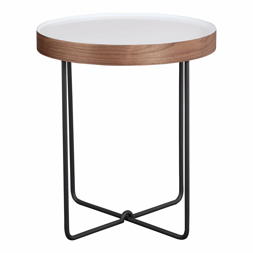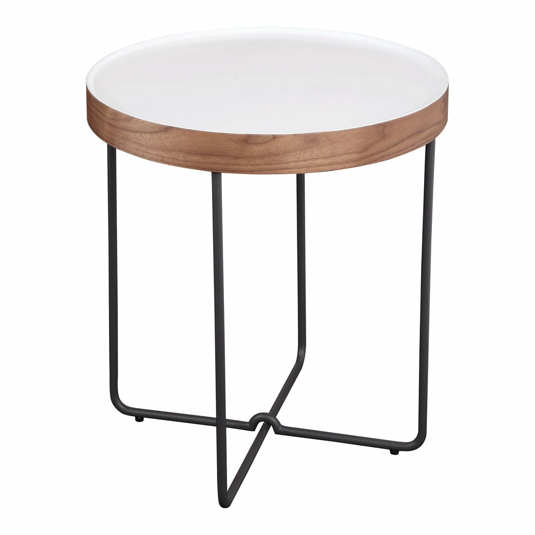Design made simple. The perfect contemporary complement to your living room, the Lenor Side Table boasts a sophisticated modern design. With a white lacquer tabletop and walnut veneer trim this side table’s airy design is ideal for condo’s and apartments.