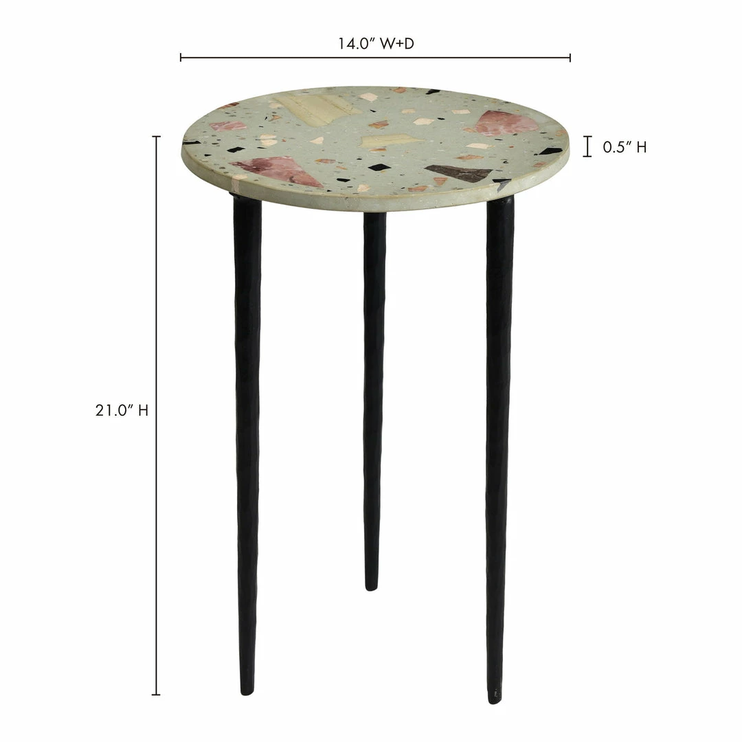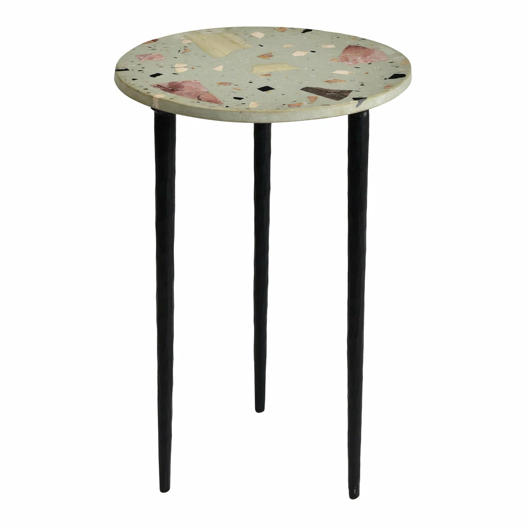 A multi-colored terrazzo surface and strong iron legs make the Menta end table perfect for the modern home.