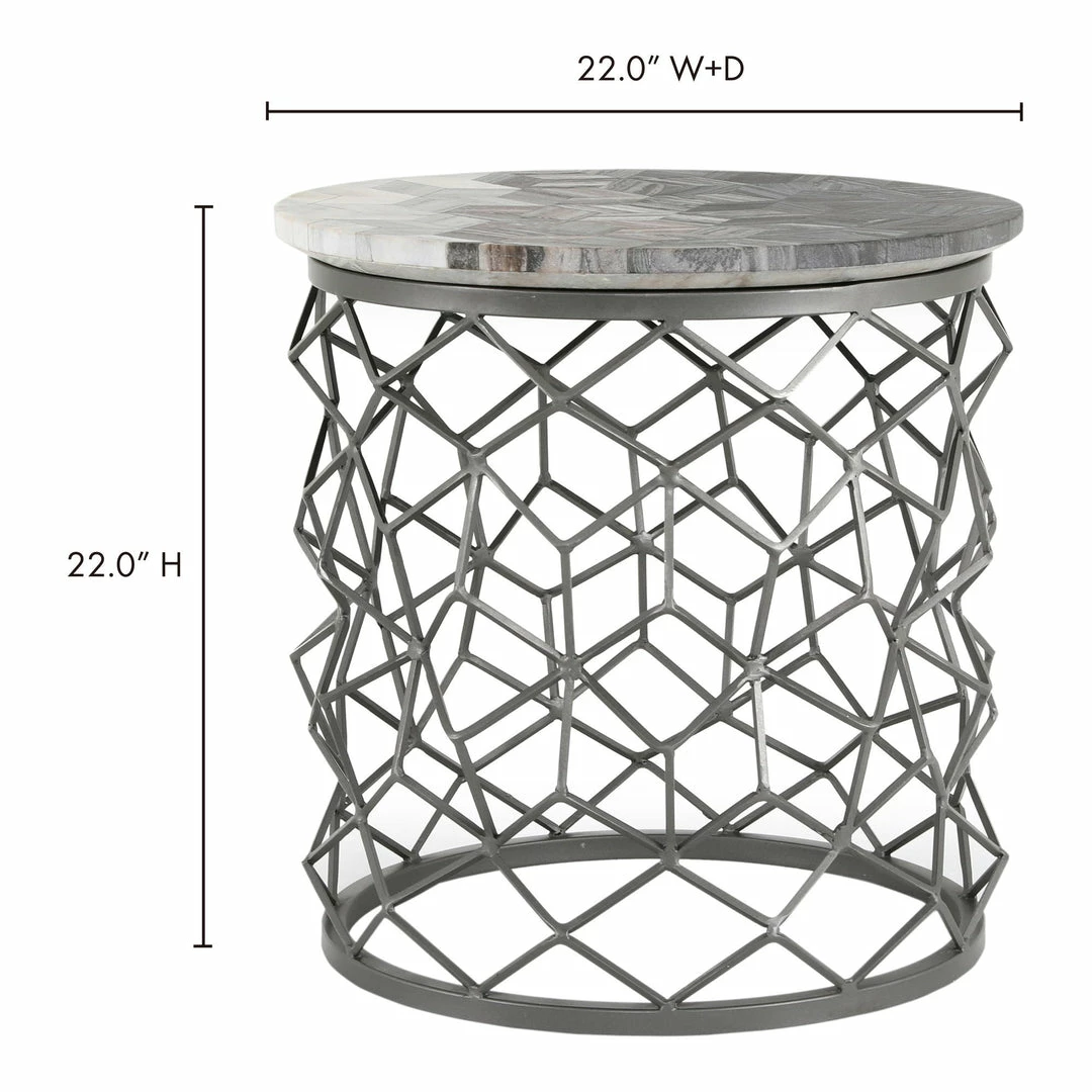The Mythos side table has a marble top with a distinctive ombre effect. An intricately designed piece, and a stunning addition to your living area.