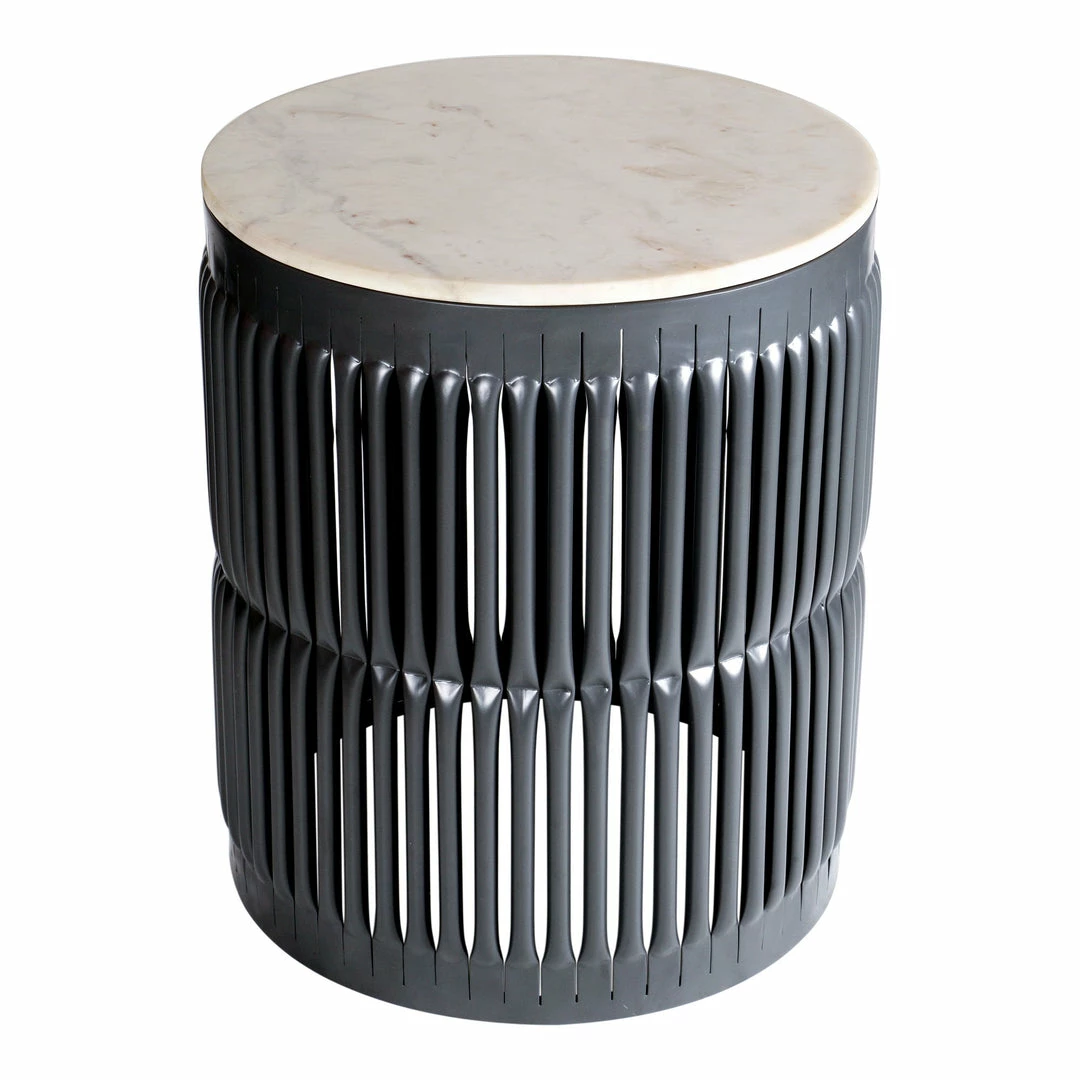 A nod to the industrial with a contemporary dash, the Nelson side tableโs smooth white marble top balances out a rougher powder-coated iron gate base in gunmetal, ideal for the living room or bedroom.
