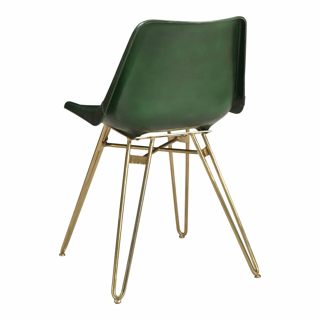 With a solid iron base and green goat leather upholstery, the Omni will give your dining space a modern edge.