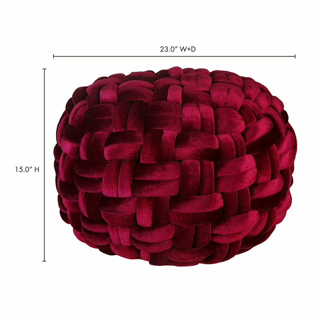 Shiny red velvet in a thick cable weave make this pouf the ideal occasional piece for the modern living room. Comfortable and stylish.