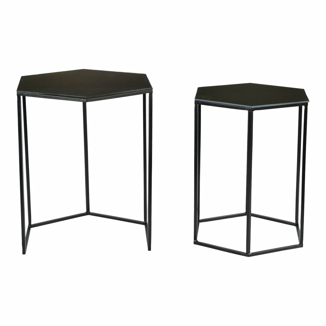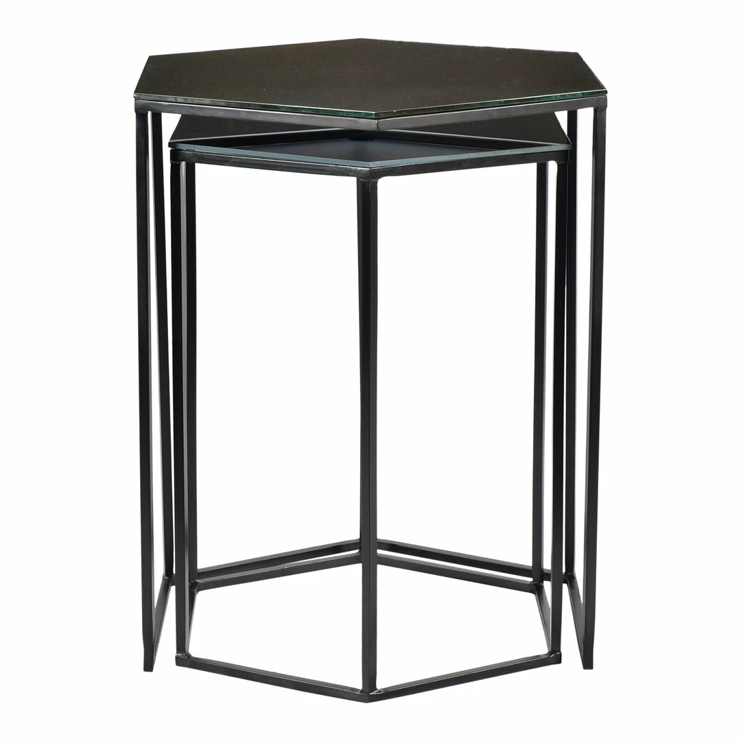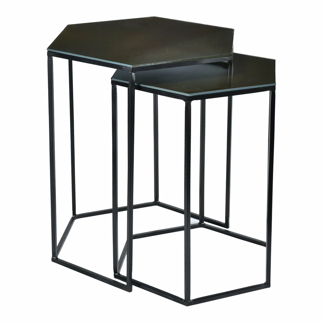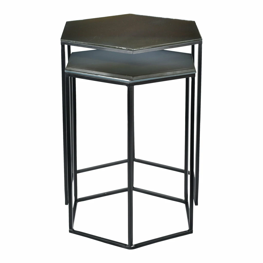 The Polygon accent tables are a space-saving solution. A set of two nesting tables, they are the perfect blend of industrial style and function.