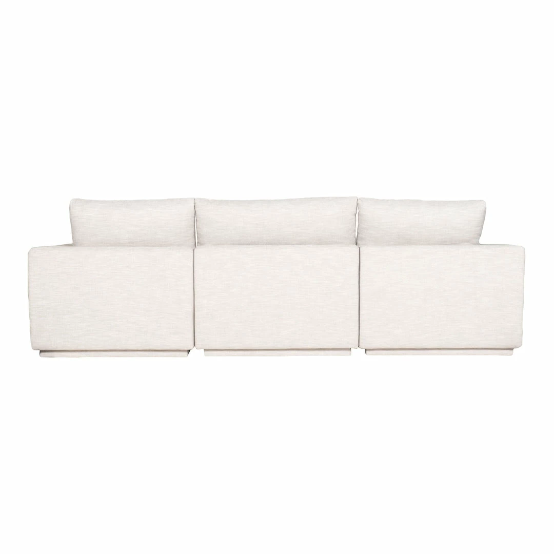 An everyday modular marvel – the Justin modular sectional arrangement features a versatile design for any sized space with a corner chair, slipper chair, and stylish ottoman outfitted in a linen-blend upholstery and foam plus feather fill cushioning.