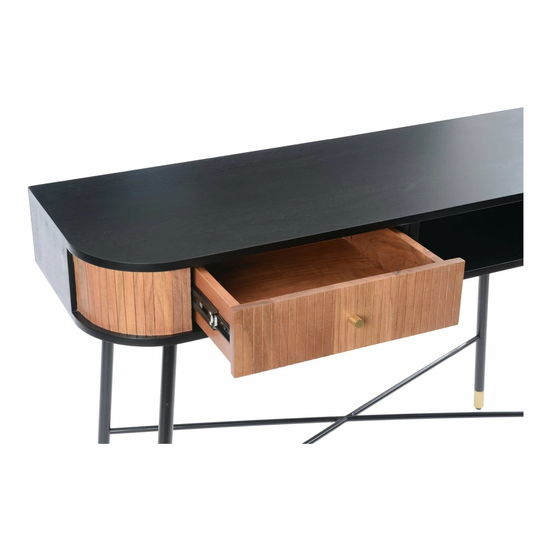 The Bezier console table features an irresistible marriage of solid mango wood and an iron frame. Attractive and functional modern design.