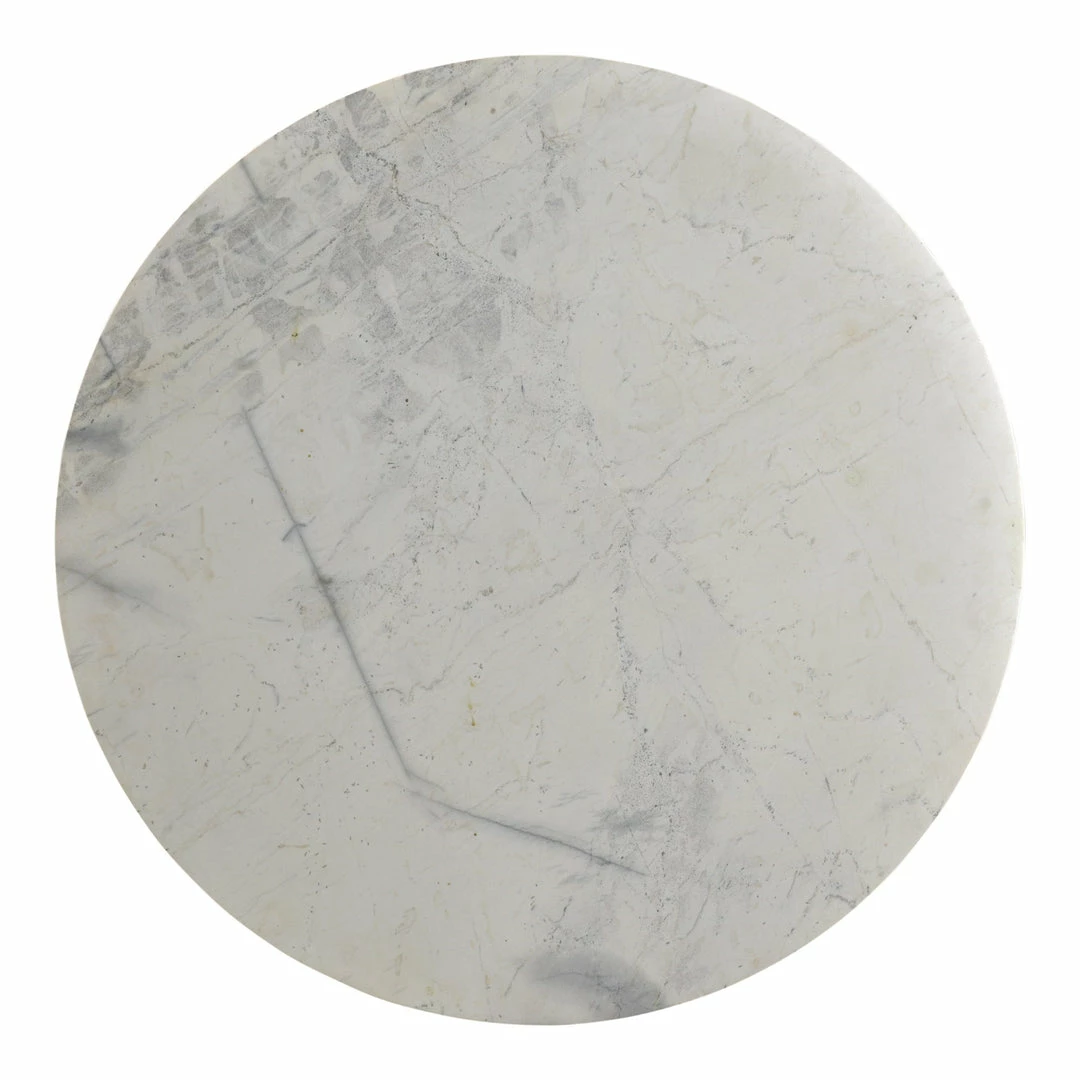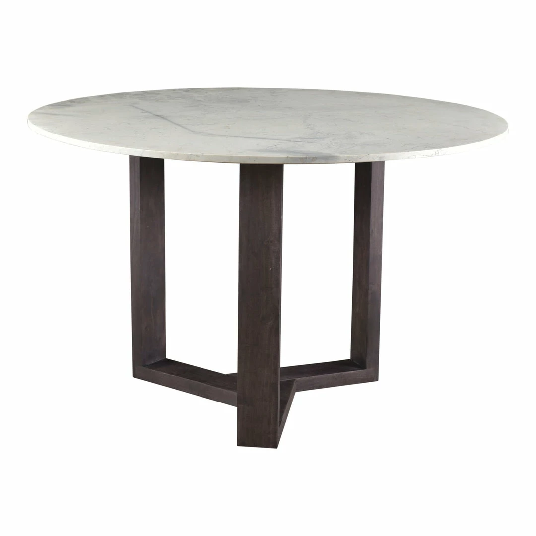 The Jinxx dining table has a polished grey marble surface and a base of acacia wood. A deceptively simple design gives this scandi-inspired table its chic look.